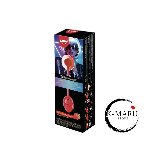 Lollipop Strawberry Flavor with Music – Hip Hop Music (Amos) je jedinstveni slatkiš koji spaja okus jagode i glazbu u zabavno iskustvo. Dok uživaš u lizalici, posebna tehnologija prenosi vibracije kroz zube i čeljust te omogućuje slušanje hip hop glazbe iz same lizalice.